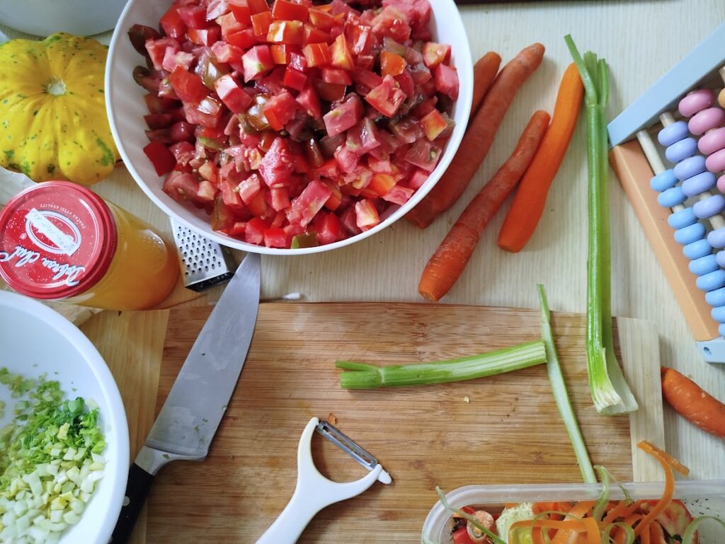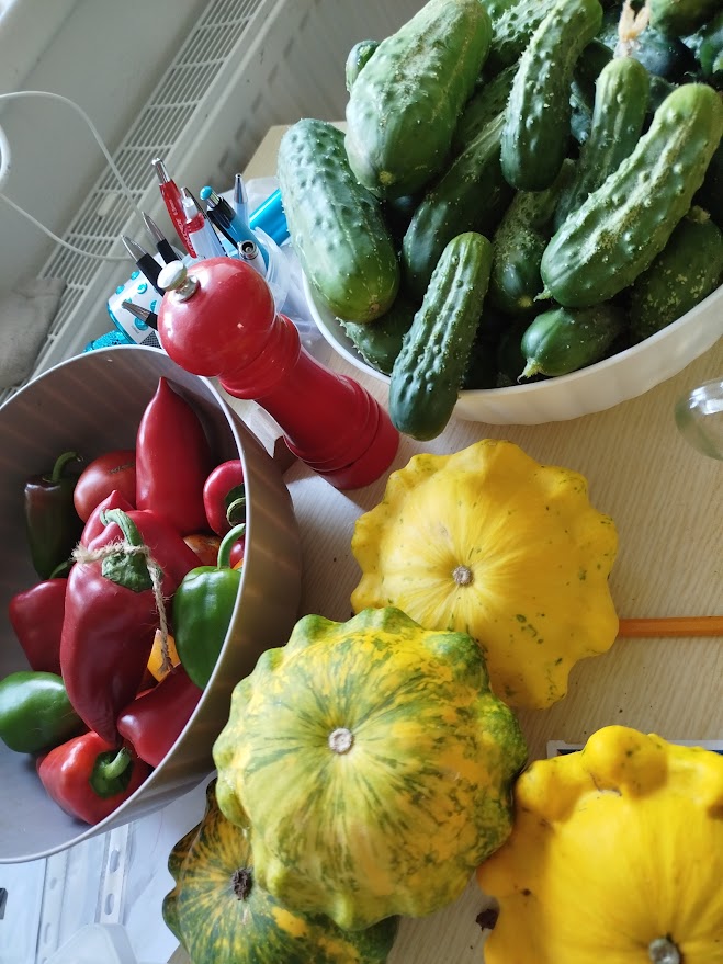 Jinak nepopisuju nějaké hyperzdravé úvahy nad stravováním, myslím, že se rozhodně nedostáváme na půl talíře zeleniny ke každému jídlu a 5 porcí denně taky ne. Snažíme se co nejvíc nakupovat sezonní věci a všechno co máme navíc, nám dává možnost si té zeleniny dopřát víc – než kolik bych jí nakoupila a věděla, že se mi bude chtít ji spotřebovat. Takže váš plán bude určitě jiný, navíc váš kompromis čas/motivace může mít taky úplně jiné nastavení.